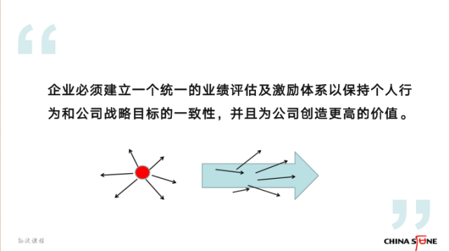 绩效管理一定要基于战略,所以企业必须建立一个统一的业绩评估及激励体系以保持个人行为和公司战略目标的一致性,并且为公司创造更高的价值。