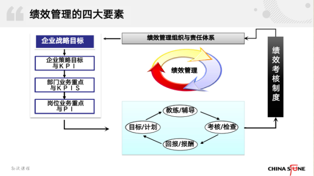 三,绩效管理不仅强调工作结果,而且重视达成目标的过程。绩效管理是一个循环过程。在这个过程中,它不仅强调达成绩效结果,更通过目标、辅导、评价、反馈,重视达成结果的动态化循环过程。