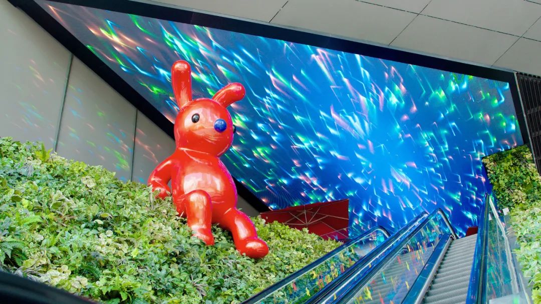 除上述三位艺术家外,张占占作为特邀艺术家,他的代表性艺术作品——红兔子,也于本次活动正式亮相,并作为公共艺术装置在PAFC Mall长期展出。体积庞大的兔子斜倚在商场出入口,以闲逸姿态遥望远方,似在等待什么,结合“Hope Flower”的主题概念,着实耐人寻味。