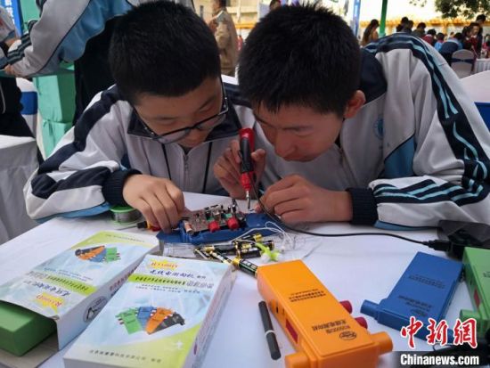 2018年9月16日,兰州城关区第九届青少年科技创新大赛启动。图为制作无线电测向机。(资料图) 刘薛梅 摄