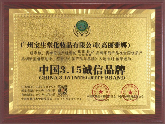 在本次调研活动中,作为中外合资生产的市场热销护肤品牌“高丽雅娜”,连续斩获三大品牌大奖:“3.15诚信品牌”、“中国著名品牌”、“全国消费者满意产品”。