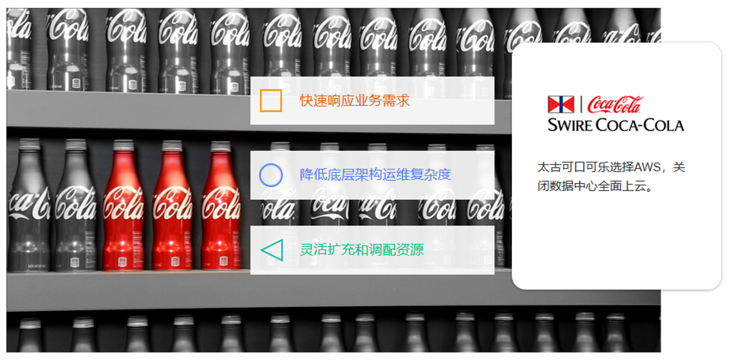 当市场环境迫使企业未来需要采用更为创新的IT架构时,太古可口可乐决定了这个更为大胆的方案——甩掉传统IT架构的包袱,通过与AWS合作将业务全面上云从而实现更为彻底的数字化转型。