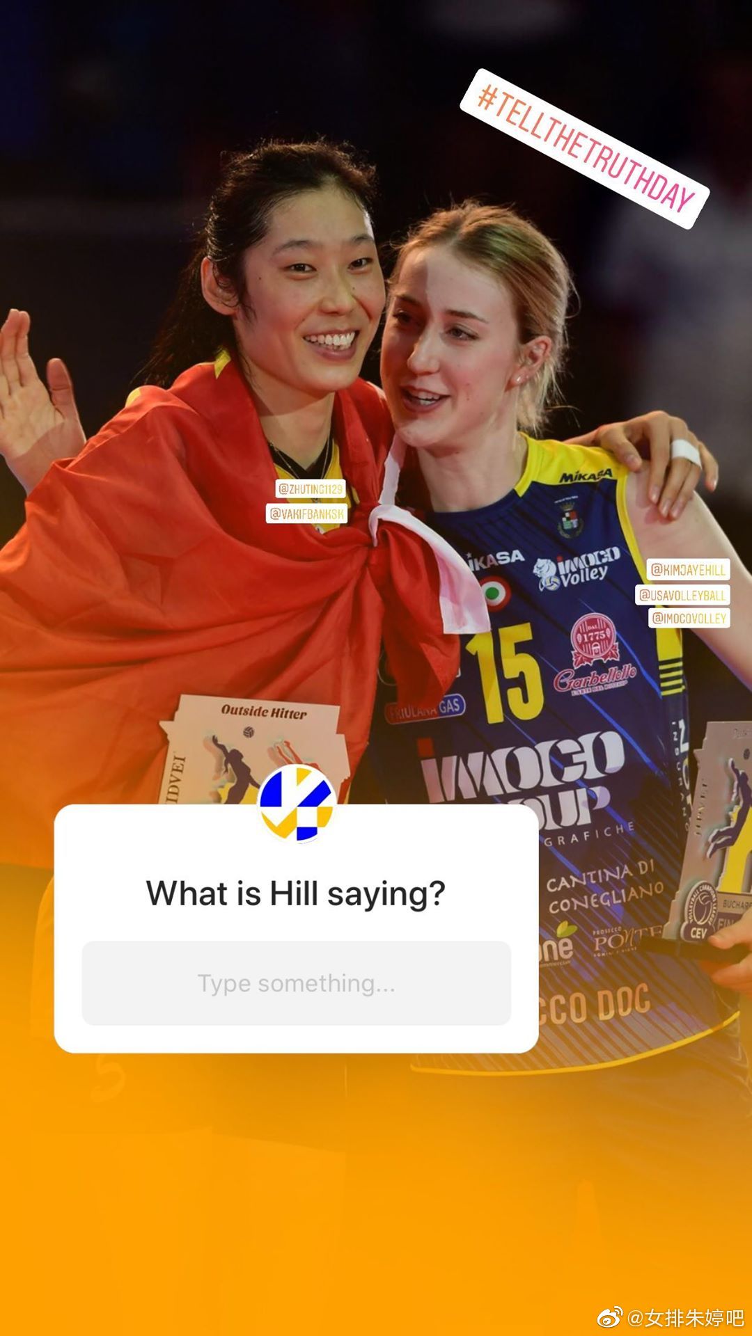 7月7日很特别,除了国内的一些特殊日子,也是,就是实话实说日,欧排协在其官方ins发起一个小活动,看图猜球星们在讲什么?大家也来猜猜图中希尔对朱婷说了什么?(这个图是2018欧冠颁奖典礼的时候) ​