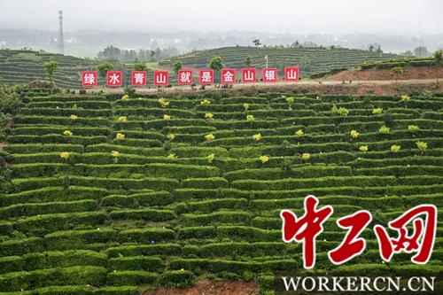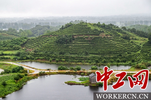 中工网讯 7月16日,细雨蒙蒙,在河南省信阳市罗山县的灵山上,遍铺山坡的茶树喝饱了滋润的雨水,透着十足的清新和生机,这是罗山县灵山茶业有限责任公司精心打造的标准化生态茶园,但就在几年前,这里还是一片荒山。