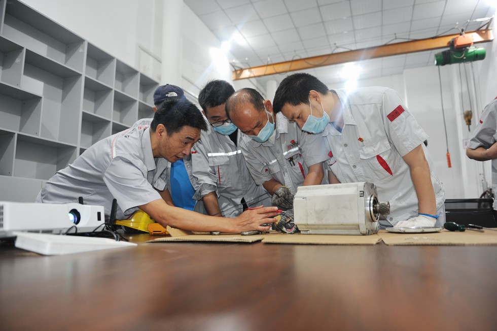 近日,在东风商用车有限公司车身厂机器人(14.290, -0.09, -0.63%)焊接培训阵地,车身厂电气首席工程师、创新工作室负责人舒章钧和机器人应用技术人员一起,拆解焊接机器人关键部件,对每个部件的工作原理、工艺参数进行分析,提高技术人员对机器人内部结构和核心技术的认识,增强技术人员快速排除故障的能力。实战化的技能培训,使创新工作室成为员工成长的“加油站”,技术成果的“孵化器”,人才培养的“练兵场”。(特约记者 郭飞 文/图)