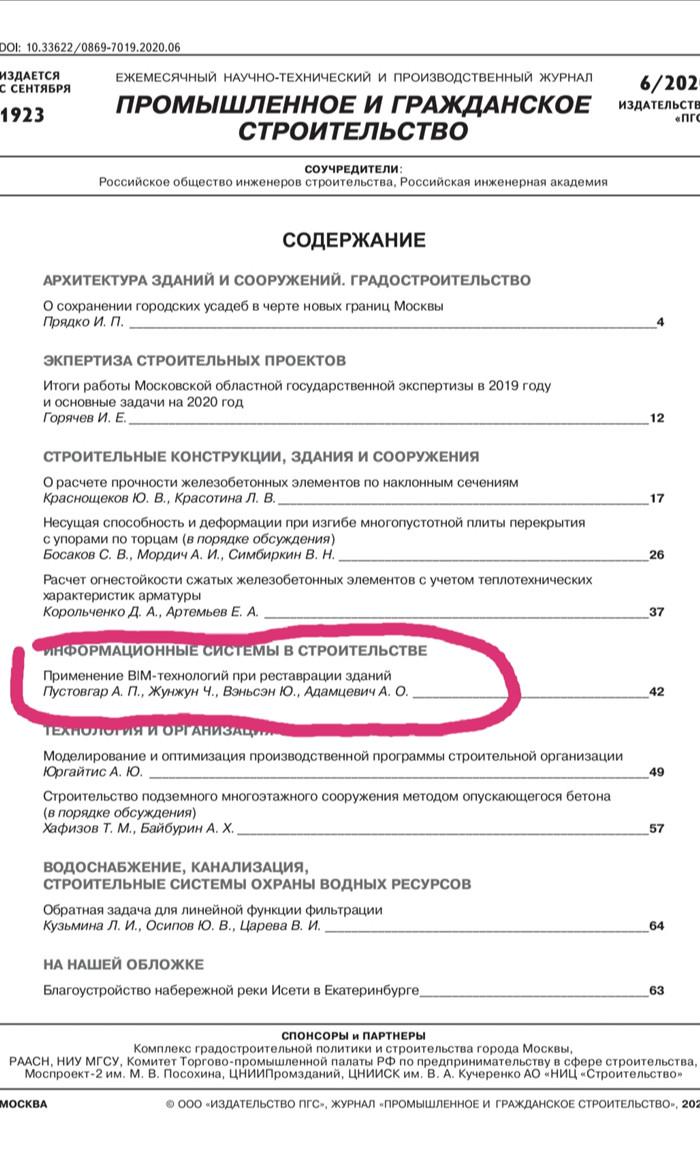 人民网莫斯科7月16日电(记者张晓东)2020年6月由中建一局和莫斯科国立建筑大学联合撰写的论文《BIM技术在欧洲古建修复工程中的应用》在俄罗斯国际学术期刊《工业和民用建筑》今年第六期上发表,莫斯科国立建筑大学副校长普斯多夫加尔、高级研究员阿达姆采维奇,中建一局中共“六大”会址修复项目工程师袁文岑、朱蓉蓉为主要作者。这是中俄企校联合在俄罗斯国际学术期刊上发表的首篇工程建造成果论文,也是为中俄科技创新年献礼。