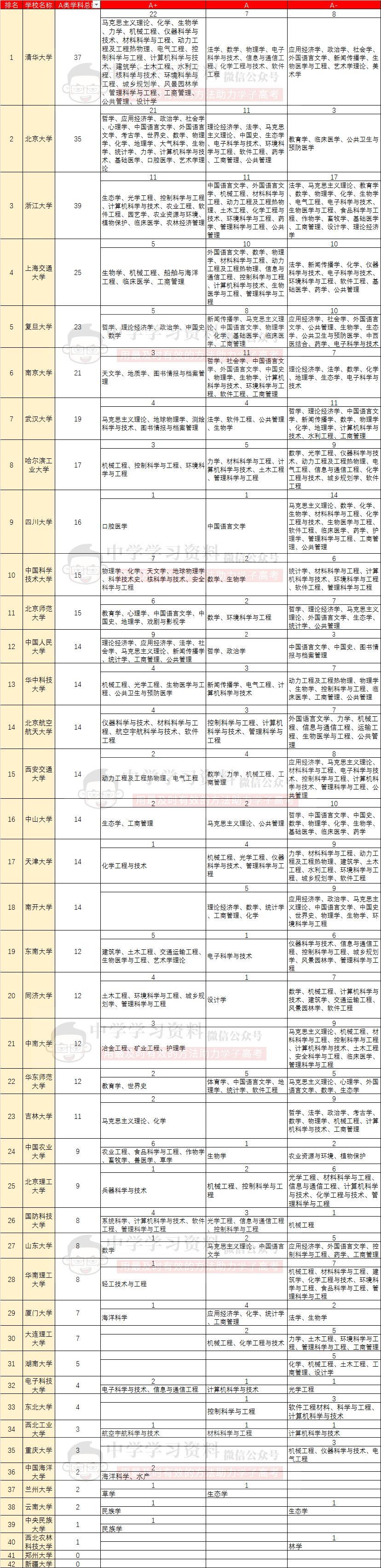 从上表不难看出,“清北浙交复”依然牢牢把控着大学排行榜的前五名,而有10个以上A类学科的大学,也拥有着大家公认的实力。