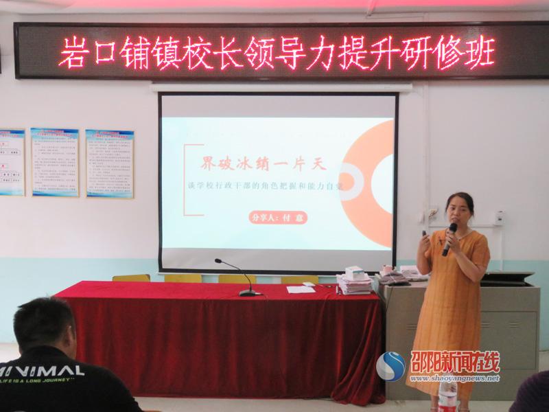 邵阳新闻在线讯(通讯员 张勇跃)7月7日,邵阳县岩口铺镇校长领导力提升研修班举行第四次面授暨结业典礼,在岩口铺支教的天心区井岗小学教学副校长付意,以《界破冰绡一片天》为题,分享了学校行政干部的角色把握和能力自觉。18名校长(行政)获评优秀学员。