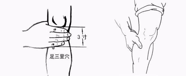 足三里穴,是“足阳明胃经”的主要穴位之一,有生发胃气、燥化脾湿的作用。按摩时,有酸胀、发热的感觉为宜。