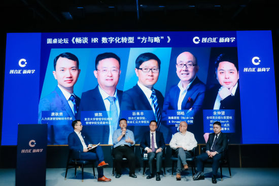 在随后的嘉宾圆桌论坛中,复旦大学管理学院教授、管理学院党委副书记姚凯,仲望咨询董事长余仲望,海德思哲中国区董事长郭皓以及创合汇商学院和创合汇云大学院长谷来丰一起围绕“HR 数字化转型‘方与略’”话题展开讨论,针对“数字时代全球人力资源发展趋势、企业所需何种新型领导人才以及HR数字化转型对企业人才战略的影响”三个问题进行深度分析,来自产业多方视角的声音与观点得以激情碰撞。