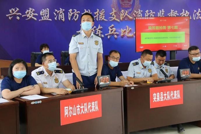8月6日,2020年兴安盟消防救援支队消防监督执法岗位大练兵比武竞赛在支队机关七楼会议室举行。此次比武竞赛,来自全盟7支消防监督执法队伍的21名人员参加,这既是对大练兵成果的检阅与考验,也是全盟消防监督执法队伍业务能力与精神面貌的一次展示。
