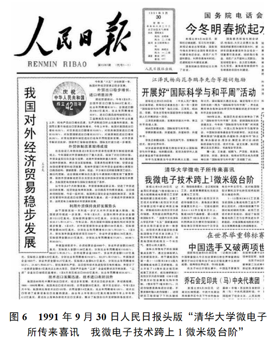 值得一提的是,1微米攻关过程并非仅仅由清华大学微电子所一家独自完成,这其中有着国内多家微电子研究机构和相关专家的协作。3微米研制过程中的测试软件,就是清华微电子所与中国科学院微电子中心合作开发出的,从而解决了一个重要难题。国家自然科学基金的重大任务更是由清华大学、中科院半导体所、北京大学三家单位共同承担(见图3)。为了研究方便,中国科学院半导体研究所的林兰英院士从国家经费里买了一台分子束外延就放在中科院微电子中心,大家共享使用。北京大学王阳元也曾回忆:“项目上有很多合作,我记得当初4K MOS DRAM,是北大设计的,在清华开发研制成功的”。