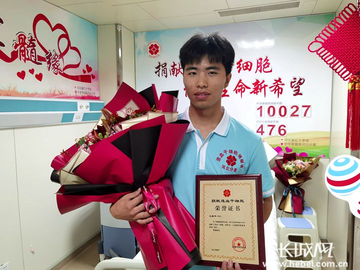 8月13日,马嘉伟在河北医科大学第二医院捐献了306毫升造血干细胞悬液,为一位素不相识的患者带去了生的希望,他也成为河北首位“00后”成功捐髓的志愿者。