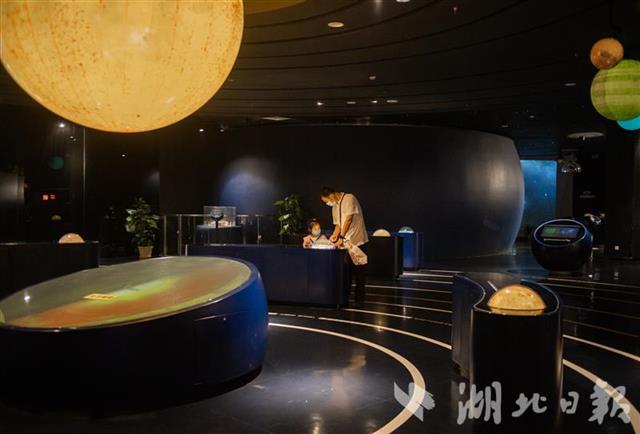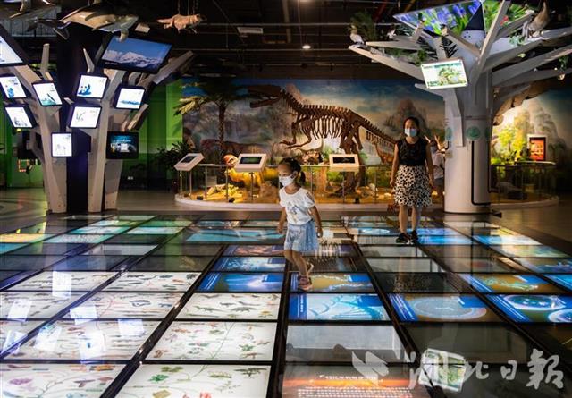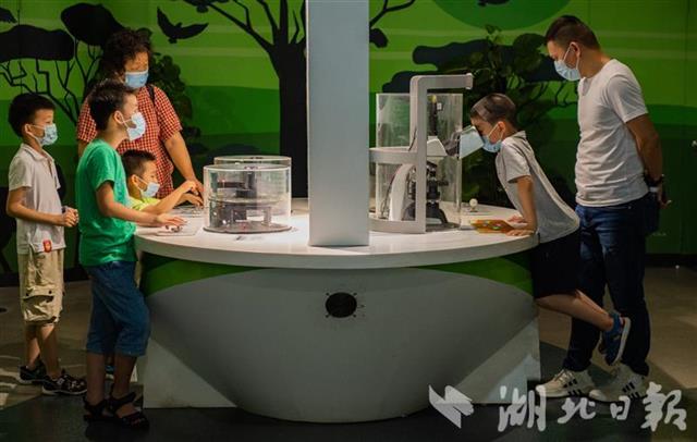 8月21日,小朋友在武汉科学技术馆里参观。暑假期间,许多家长带着孩子来到武汉科学技术馆参观、游玩,孩子们在生命展厅、水展厅、宇宙展厅等展厅里探寻科学奥秘。根据常态化疫情防控工作需要,自8月22日起,武汉科学技术馆每日限定接待量由之前的500人调整至1000人,上午接待600人,下午接待400人,观众网上预约,经过防疫测温之后进入场馆参观。(湖北日报全媒记者 薛婷 摄)