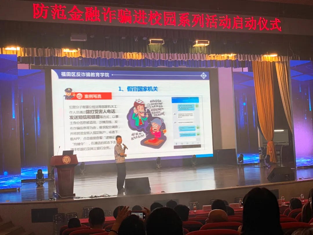 ▲庄志仲代表深圳公安进行“反诈进校园”讲课