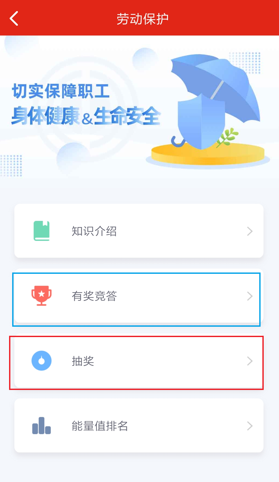 登录“苏工惠”APP进入“劳动保护”栏目,参加有奖问答、抽奖。