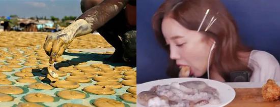 一边是海地人民吃泥饼充饥,一边是“大胃王”吃播边吃边吐,实在刺眼。|来自网络
