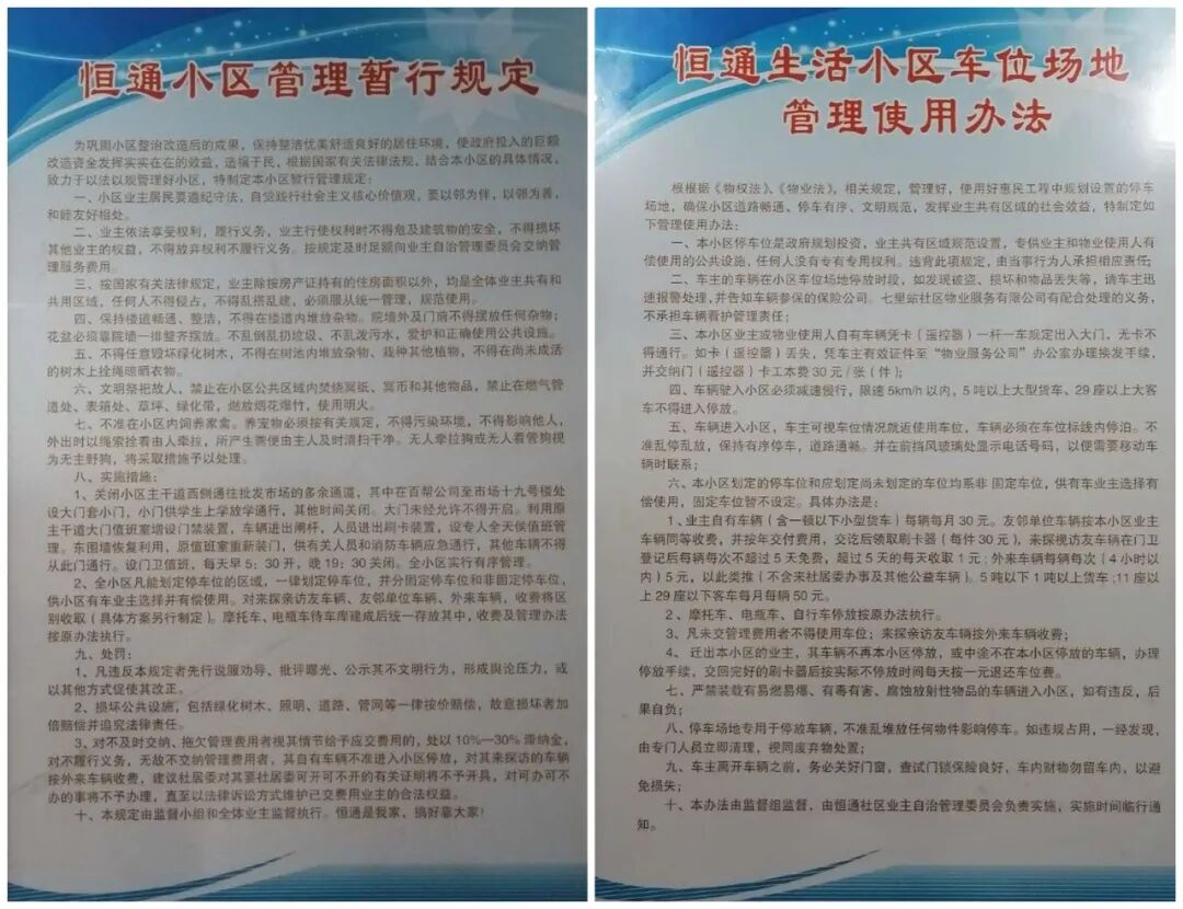 恒通小区成立自治委员会,制定恒通小区管理暂行规定和小区车位场地管理使用办法