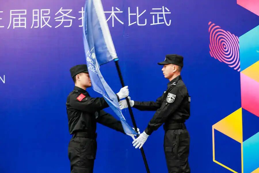 在上午的开幕式上,上一届技能获得者与今年的选手代表完成交旗仪式。杭州钱江世纪城消防中队班长张旭作为裁判代表、东部大区胡因作为选手代表分别上台宣誓,融创服务集团副总裁谢建军宣布本次技术比武正式开始。一气呵成,比赛开始前,这样一个简短又庄严的开幕式让所有人提前感受到了比武的氛围。