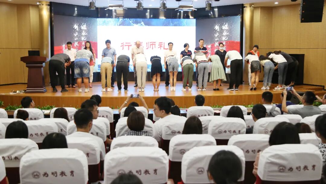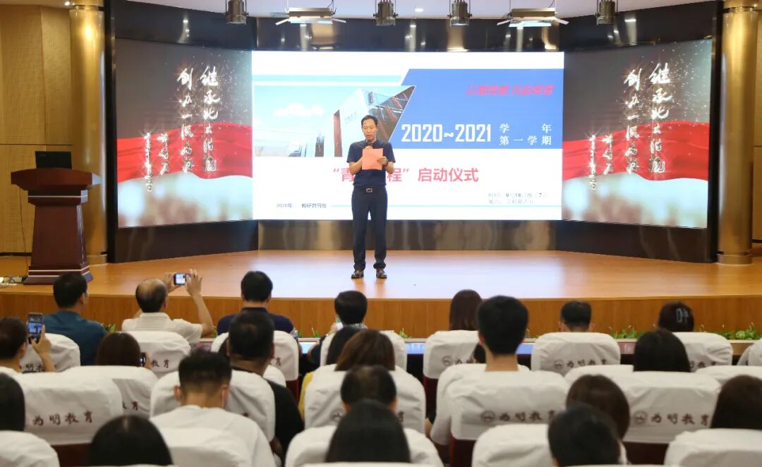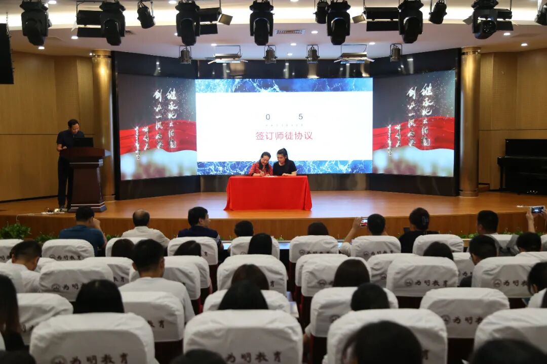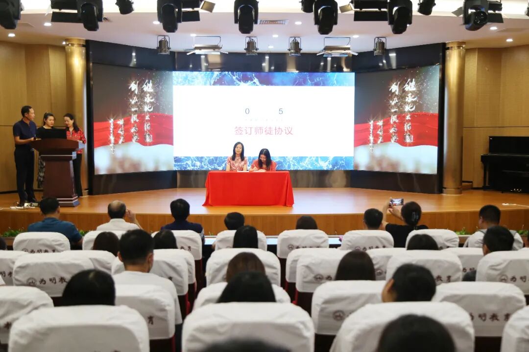 为加快青年教师队伍建设,充分发挥骨干教师的“传、帮、带”作用,进一步打造优质教师团队,2020年9月16日晚上七点,我校在报告厅举办了“2020-2021学年青蓝工程启动暨师徒结对仪式”。会议主题为“以爱育爱,托起希望”,寓意着师父对徒弟无私的爱,托起徒弟快速成长的希望;师徒以对学生无私的爱,托起学生快乐成长的希望。