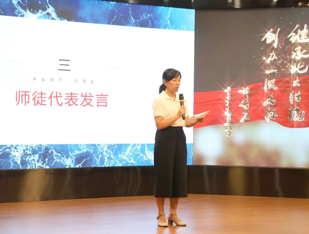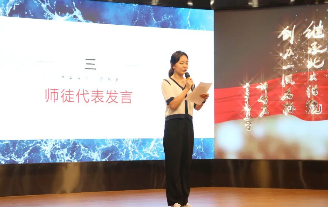 小学部茹心雨老师和初中部石吉文老师则代表全体徒弟,表示了对学校领导和诸位师父的感谢,并承诺将不负众望,努力学习,尽快成长,加快自己从一个新教师到老教师的转变。