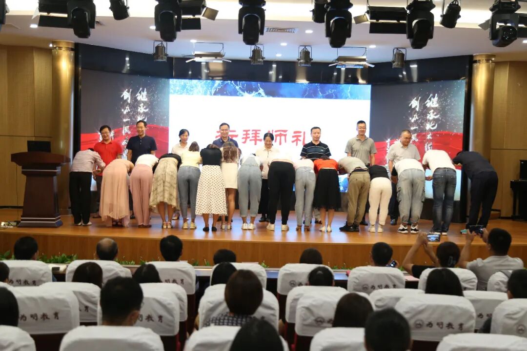 在特邀司仪小学部韩伟老师的主持下青年教师与骨干教师行拜师礼并合影留念。