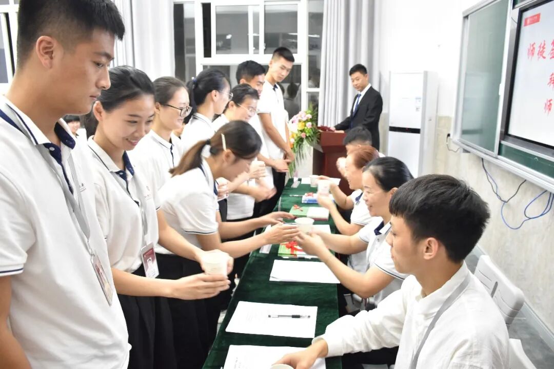 拜师仪式上,徒弟们带着感恩和决心,向师傅敬茶;师傅们也向徒弟赠送礼物,表达对徒弟的殷切希望。