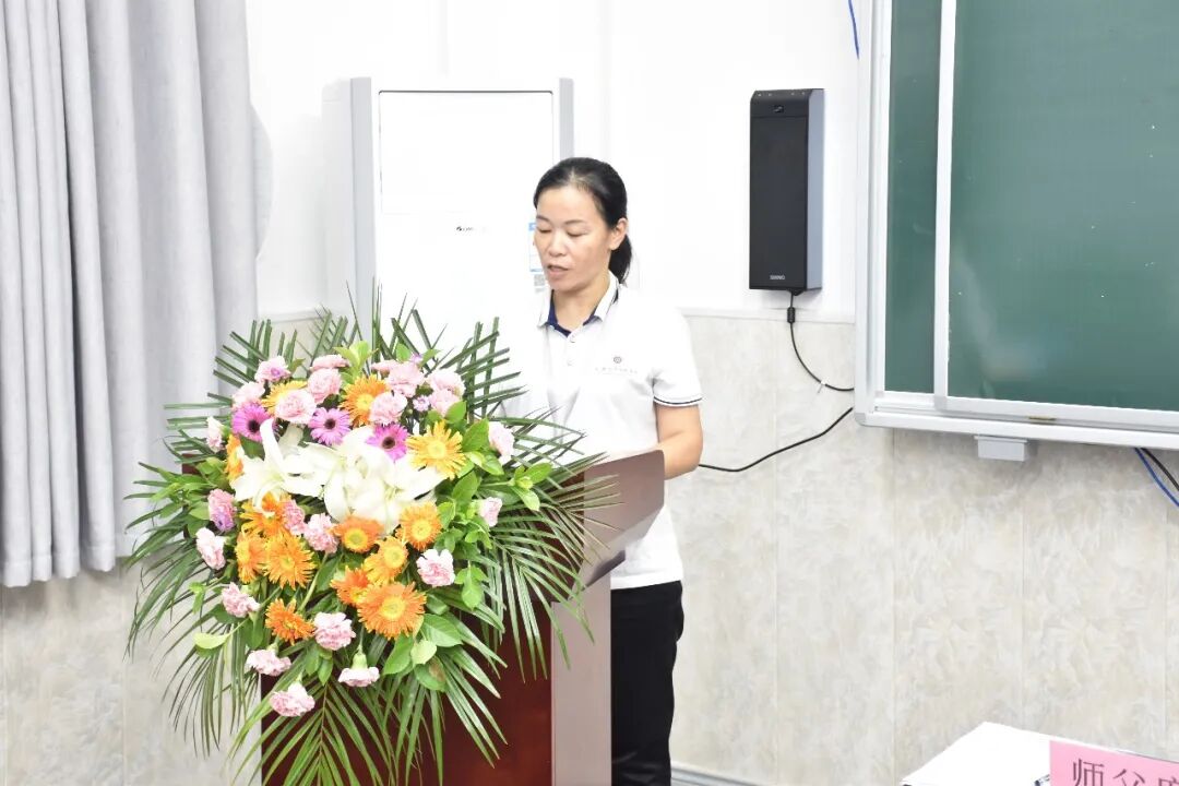 王莉老师作为师傅代表,在发言中道出了自己的心声:作为师傅,他们愿意为新教师的成长助力,倾囊相授,也希望徒弟们早日达成“青出于蓝而胜于蓝”的美好愿景。