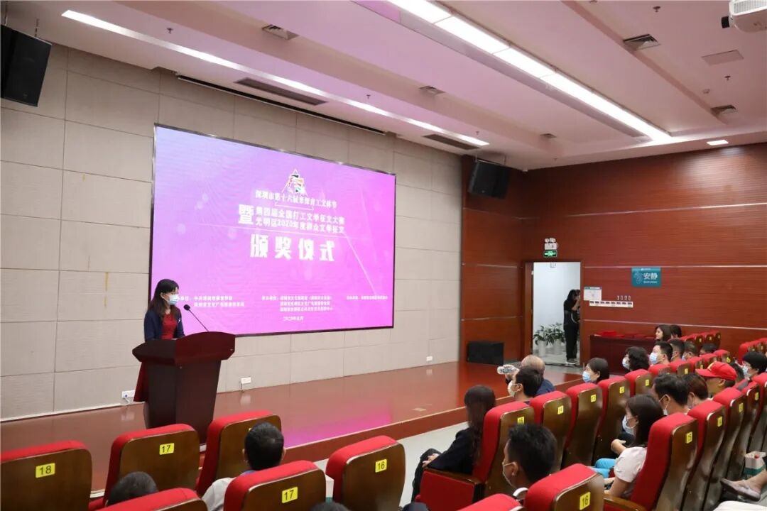 9月25日下午,由中共深圳市委宣传部、深圳市文化广电旅游体育局主办,深圳市文化馆联盟(深圳市文化馆)、深圳市光明区文化广电旅游体育局、深圳市光明区公共文化艺术发展中心共同承办,深圳市光明区作家协会协办的深圳市第十六届来深青工文体节暨第四届全国打工文学征文大赛在光明区图书馆四楼报告厅举行