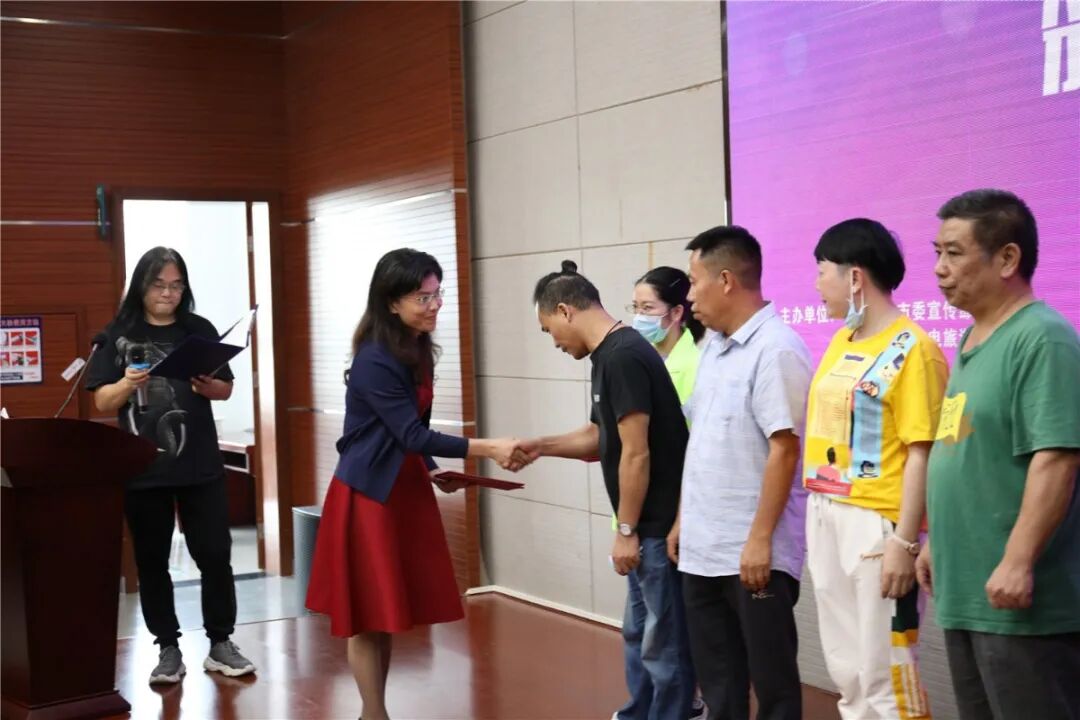 深圳市文化广电旅游体育局公共文化处副处长张少燕同志为获奖者颁奖
