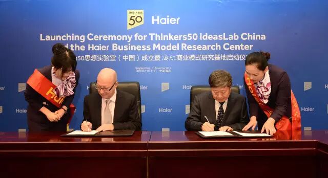11月11日,《管理百年》作者斯图尔特·克雷纳空降青岛,不过这一次他的身份是Thinkers50联合创始人,并给他的读者张瑞敏带来一份厚礼。全球首个管理思想家排行榜Thinkers50当日宣布,选取海尔作为Thinkers50进入中国的首个研究基地,并将在海尔的中国青岛总部建设新的Thinkers50思想实验室(中国)。