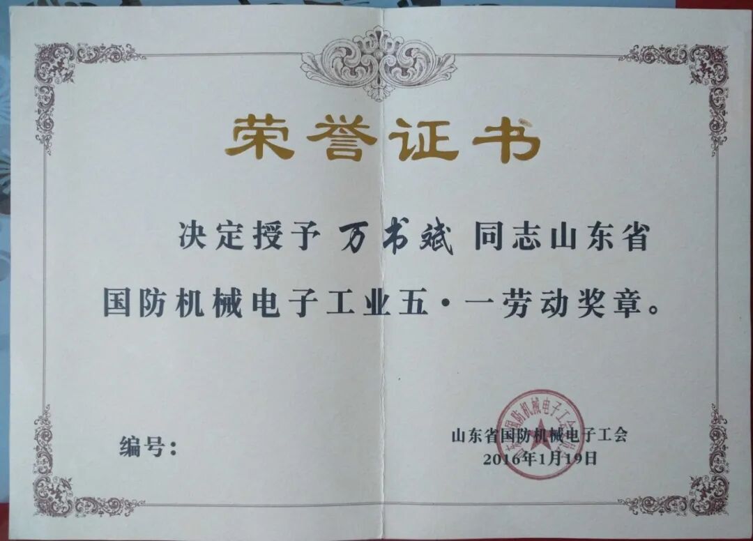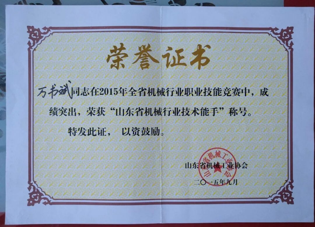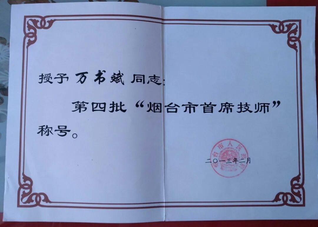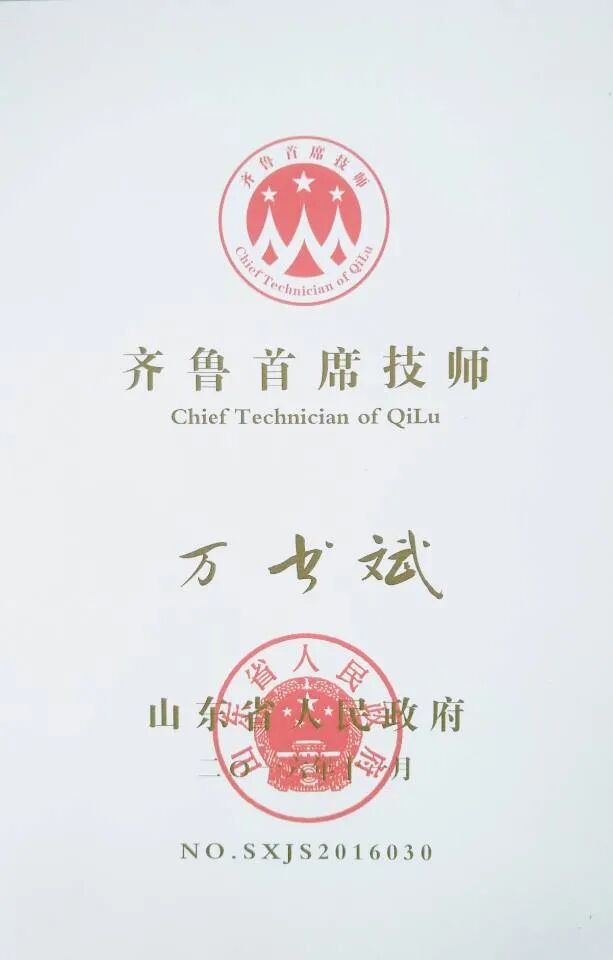 齐鲁首席技师万书斌工作室荣誉展