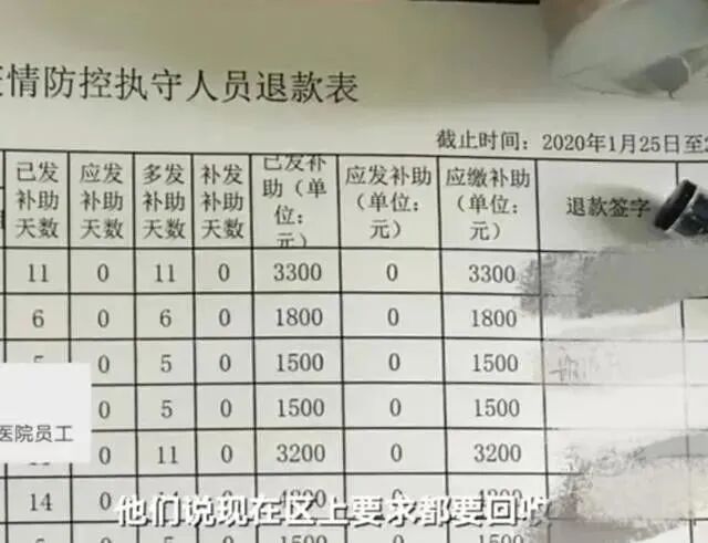 西固区人民医院通知部分医护人员退还防疫补助