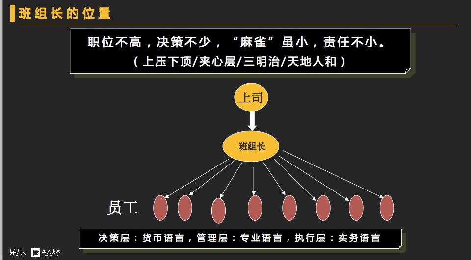 使命是班组长最根本性的任务,班组是企业的“细胞”,班组长是“细胞核”,班组长的使命是让班组这个“细胞”健康发展,只有企业“细胞”的健康,才能有企业的健康。因此班组长使命包含下面三个内容: