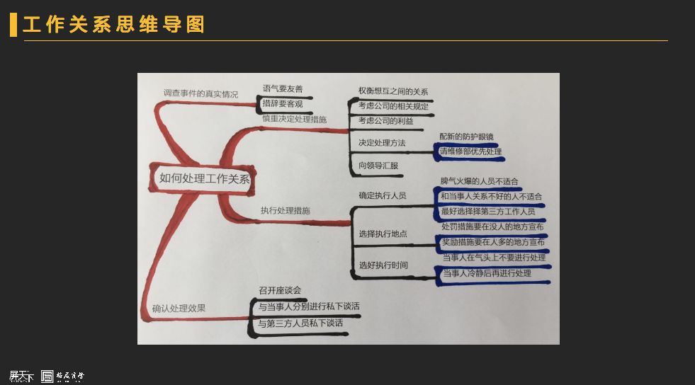东莞分院杨俊金、华宏人才学院胡晓帅分别就工作关系与团队建设中的组长和员工王大锤的问题进行了讲解。他们一致认为组长存在措施强硬,态度不友善;缺乏耐心;滥用经济处罚;易冲动,辞退王大锤等问题;员工王大锤存在送修眼镜未及时上报组长;用敌视和对抗心态与组长沟通;不虚心,不友善等问题。