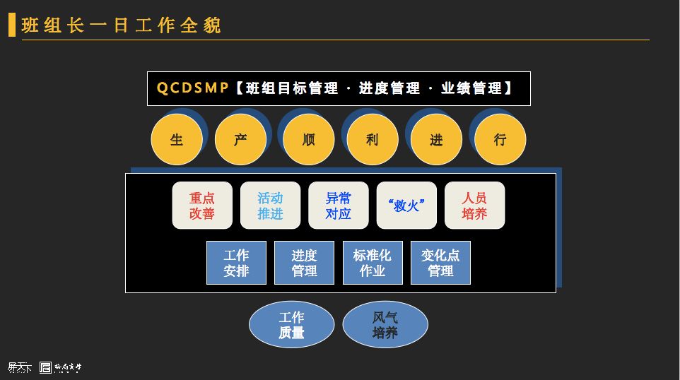 班组团队的建设,在不同的阶段采用不同的说法,说到底班组长在生产管理中要遵循六大准则即为PQCDSM