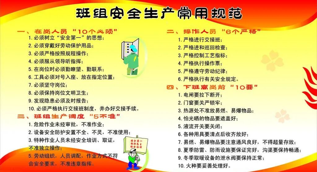 班组安全规章制度的建立和完善,要坚持以人为本,从严管理,有奖有罚的原则,以调动班组成员的积极性、提高班组成员的安全意识、保证班组的安全生产。