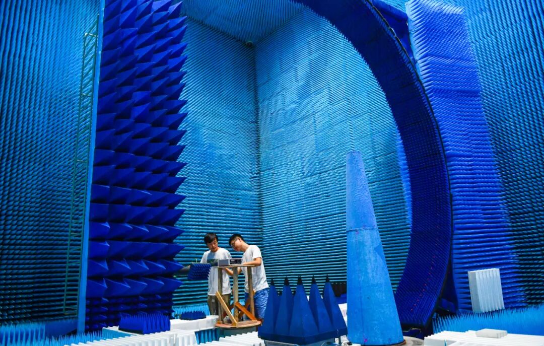 科研人员在网络通信与安全紫金山实验室的微波暗室内工作。南报融媒体记者 冯芃 摄