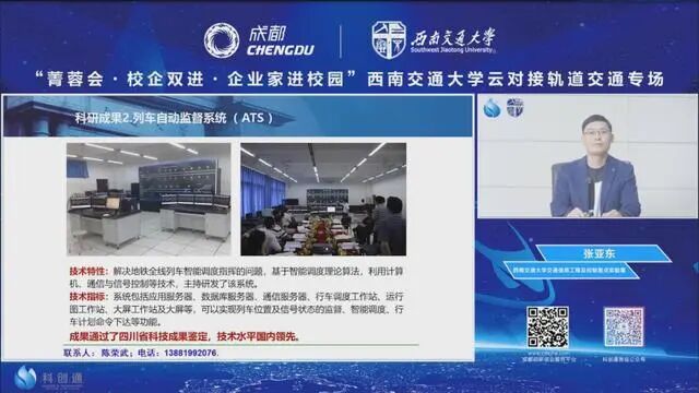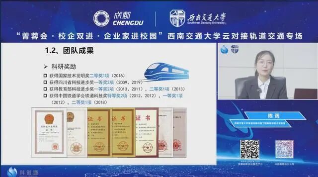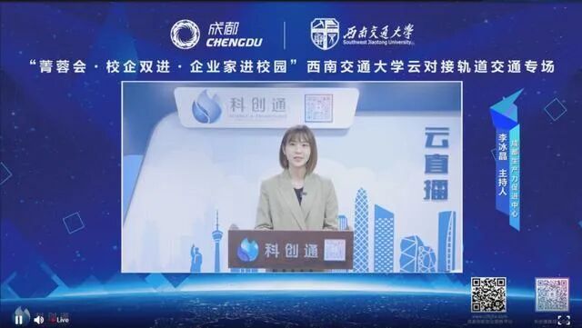 近日举行的“菁蓉汇·校企双进·企业家进校园”西南交通大学云对接轨道交通专场活动上,发布了西南交通大学科技成果汇编,汇集152项西南交通大学前沿科技创新研究成果,6个科研团队现场展示科研创新成果,并“云”上走进牵引动力国家重点实验室及轨道交通运维技术与装备实验室,带来一