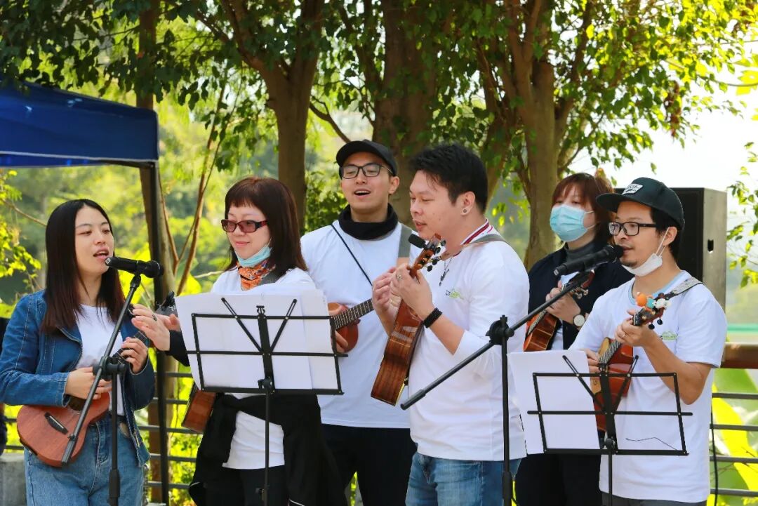 “声入淘金山”自然音乐会以不插电音乐会的形式,邀请29楼合唱团和You See乐团作为表演嘉宾,在现场演奏包括吉他、尤克里里、手风琴、手鼓等不同的乐器,结合独唱、男声二重唱、合唱等多种表演形式,不加雕琢的原声音乐与淘金山绿道优美的自然生态环境相得益彰,呈现一场朴素却温暖人心的音乐演出。