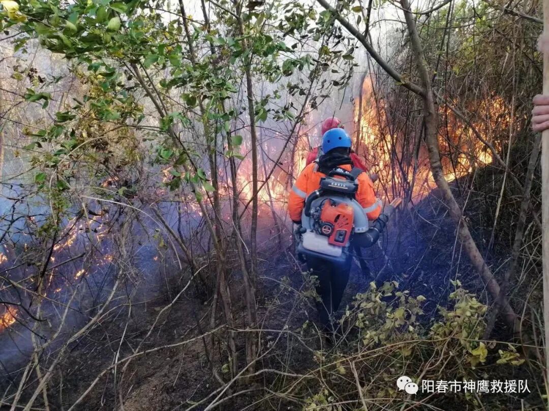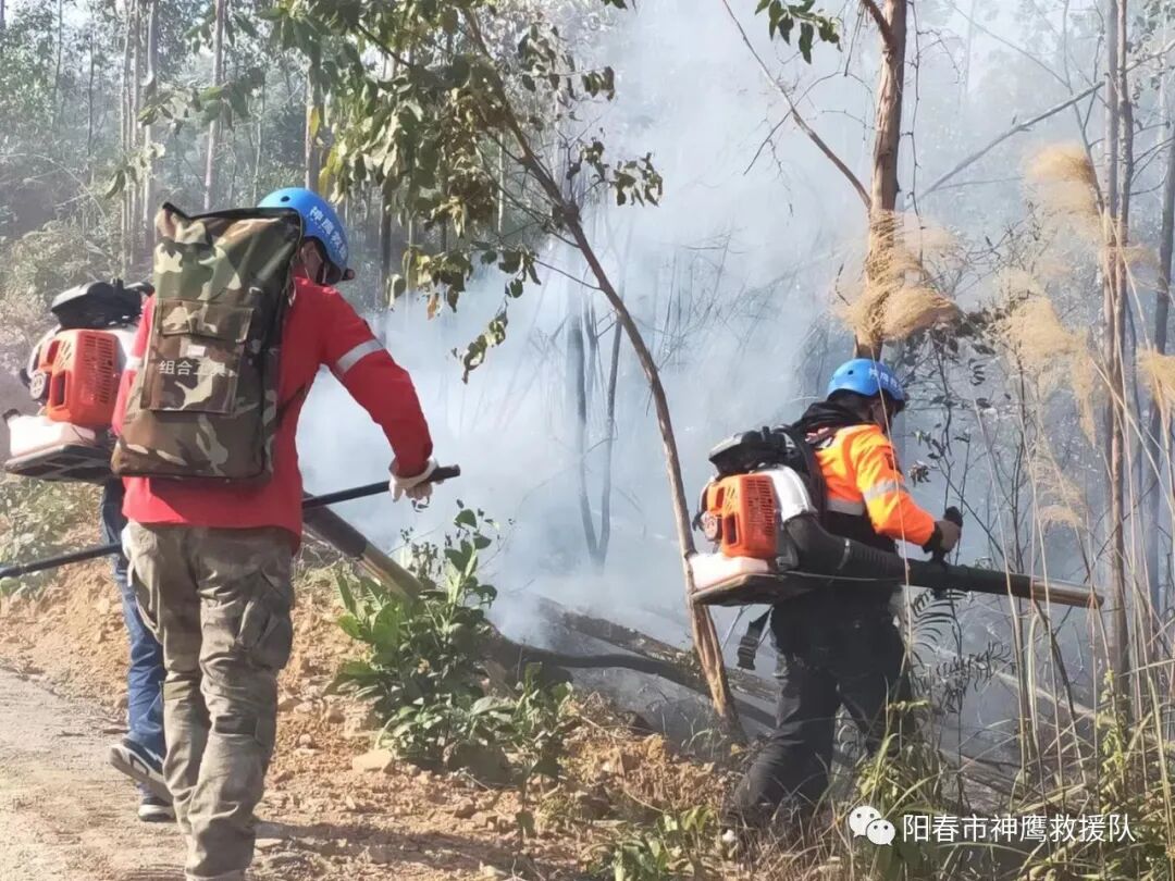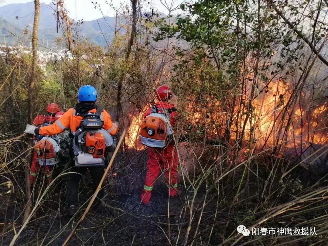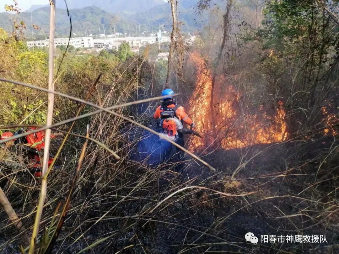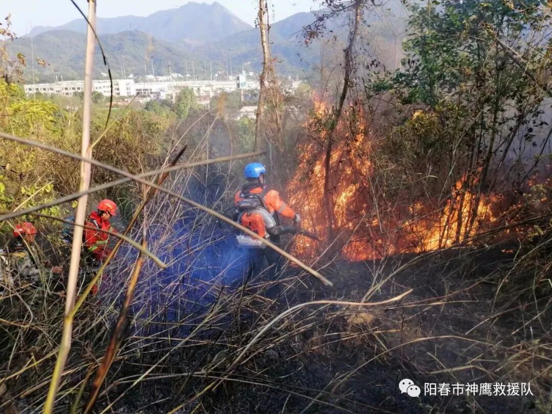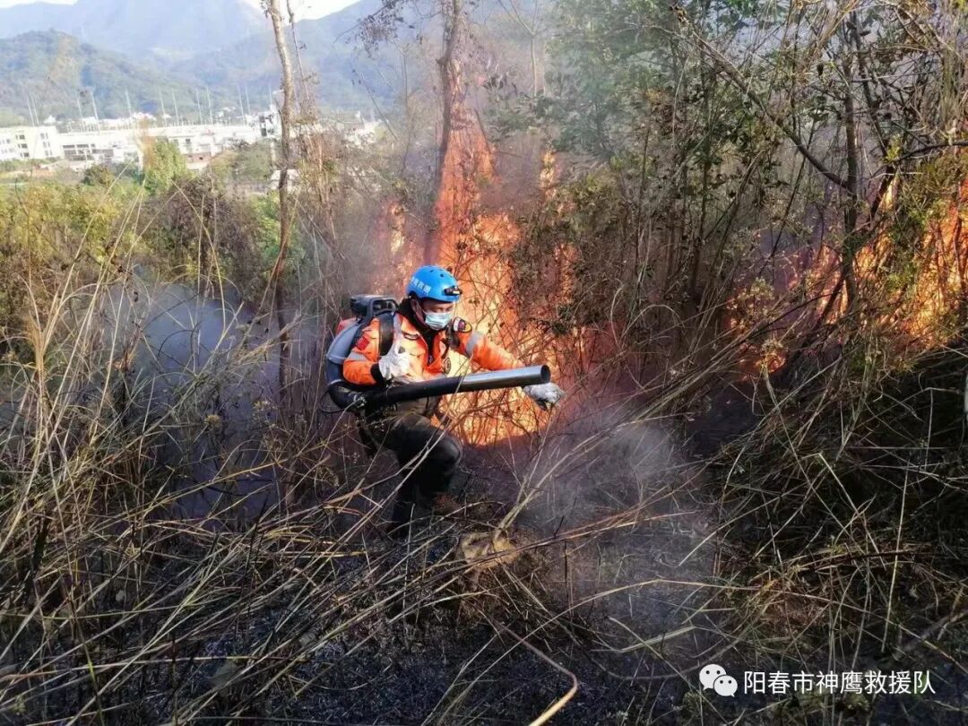 1月15日下午,阳春市春城街道顺安机动车检测站附近山林起火。接到市民反映后,神鹰救援队阳春大队随即组织8名队员赶往现场救援。