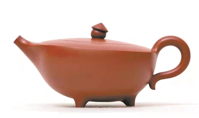 初赏此壶,似乎与生肖“牛”相关的元素并不多,其实不然。在谢华看来,一把壶要成为一件艺术品,就不能将“牛”的元素体现得过于具体,而是要通过一种意境的塑造,给人留下想象的空间。《风雨平生壶》中,壶嘴和壶把分別以牛首和牛尾抽象成形,壶盖构思独特,以小毡帽为壶钮,把牛与人的关系密切联系起来,同时象征着遮风挡雨的精神,也体现了人与自然的和谐统一。