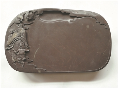 牛年春节将至,中国工艺美术大师张庆明专门设计制作了一方名为《紫气东来》的端砚,庆祝农历辛丑年的到来。据介绍,该砚的石材为坑仔岩,长27.8厘米、宽17.3厘米、高3.7厘米。据《列仙传》上记载,老子过函谷关之前,关令尹喜见有紫气从东而来,知道将有圣人过关,果然老子骑着青牛而来,并留下五千字的《道德经》传世。因此,“紫气东来”比喻吉祥的征兆。