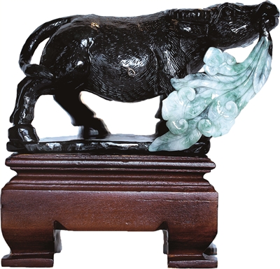 另外,中国工美行业艺术大师叶福欢为了喜迎辛丑新春,独具匠心的创作《福牛献瑞》翡翠墨翠圆雕劲牛一尊。该作品中的牛大有扭转乾坤之气概,大展牛气冲天之雄威,象征着祖国牛年的发展强势。该作品选用上好优质墨质翡翠,雕刻细腻,劲牛形象,栩栩如生,显示了工匠精神薪火传承。
