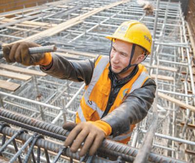 今年春节假期,中铁建工集团1000余名建设者坚守北京丰台站工作一线,冲刺丰台站主体结构封顶。图为工人正在施工。记者 张武军摄