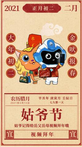 “正月初二,姑爷节”。这一天,各地习俗不尽相同,有的是女婿要亲自下厨做一桌好菜,有的是要替老丈人干一些家务活,虽然形式不同,但都体现了团圆、和谐、和睦的伦理亲情。姑爷们,即使不能回家,也要记得给岳父岳母视频拜年说说吉祥话哦!