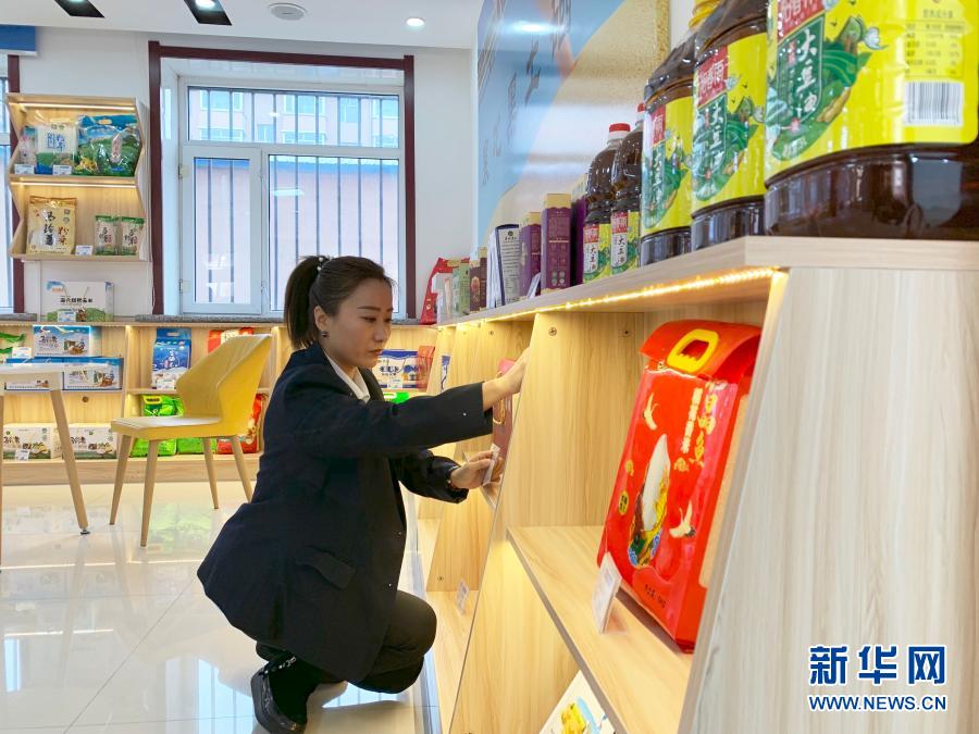在黑龙江省海伦市的特殊群体网红培训基地,学员李晓梅在整理货品(2020年11月17日摄)。新华社记者 孙晓宇 摄