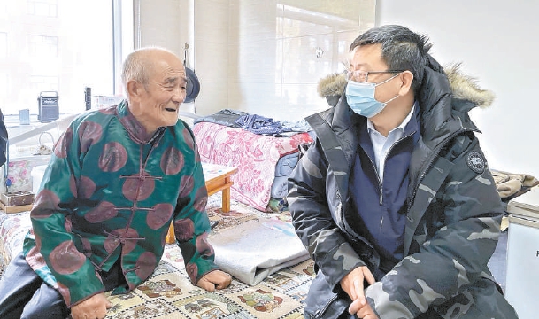 北京市挂职锡盟盟委委员杨文胜(右)与牧民交谈。刚宝力达摄