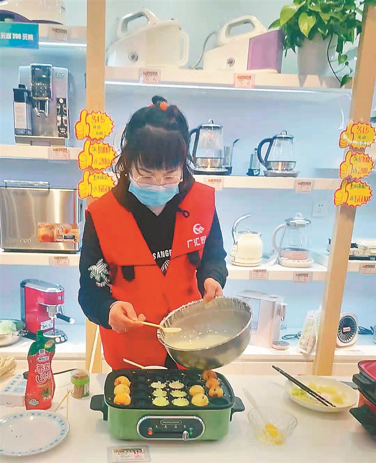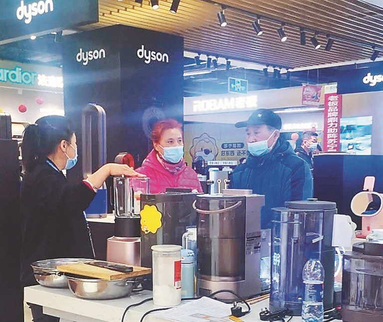 家电卖场。 现场制作演示。 健康智能厨房家电受欢迎。 健康成消费增长第一需求