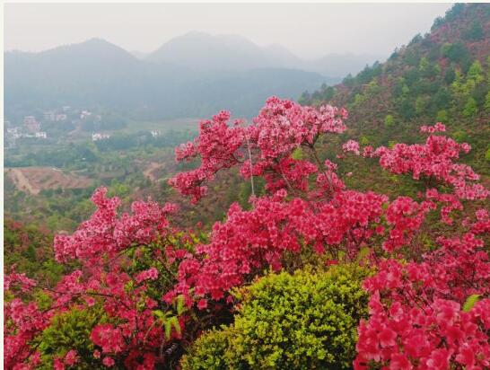 位于厦蓉高速沿线的江西于都县瑶金山,映山红美丽盛开。(江西于都县委宣传部供图)